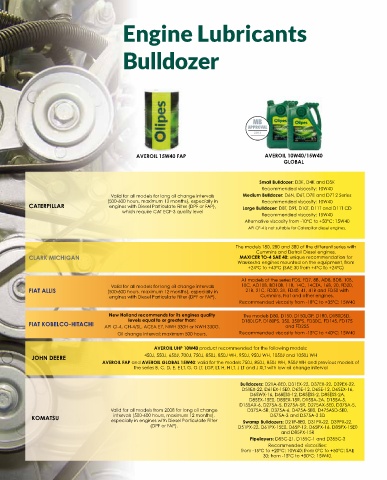 Valid for all models for long oil change intervals Medium Bulldozer: D6N, D6T, D7E and D7T 2 Series
