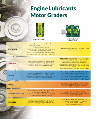CATERPILLAR API CH-4 (CAT ECF-1-�) and API CI-4 (CAT ECF-2) to Motor Graders: 12M, 14M, 120M, 140M, 160M, 160M