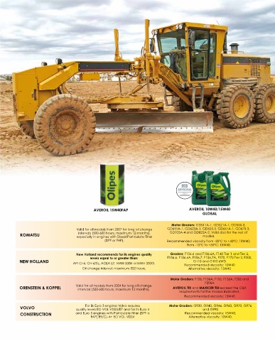 VOLVO quality levels EO VOL VDS3/E7 and for its Euro 4 Motor Graders: G930, G940, G946, G960, G970, G976
