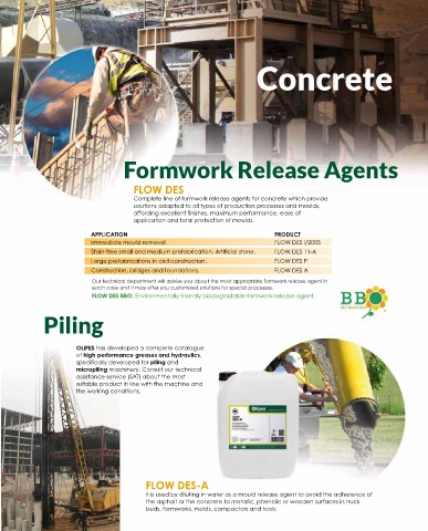 FLOW DES BBO: Environmentally-friendly biodegradable formwork release agent.